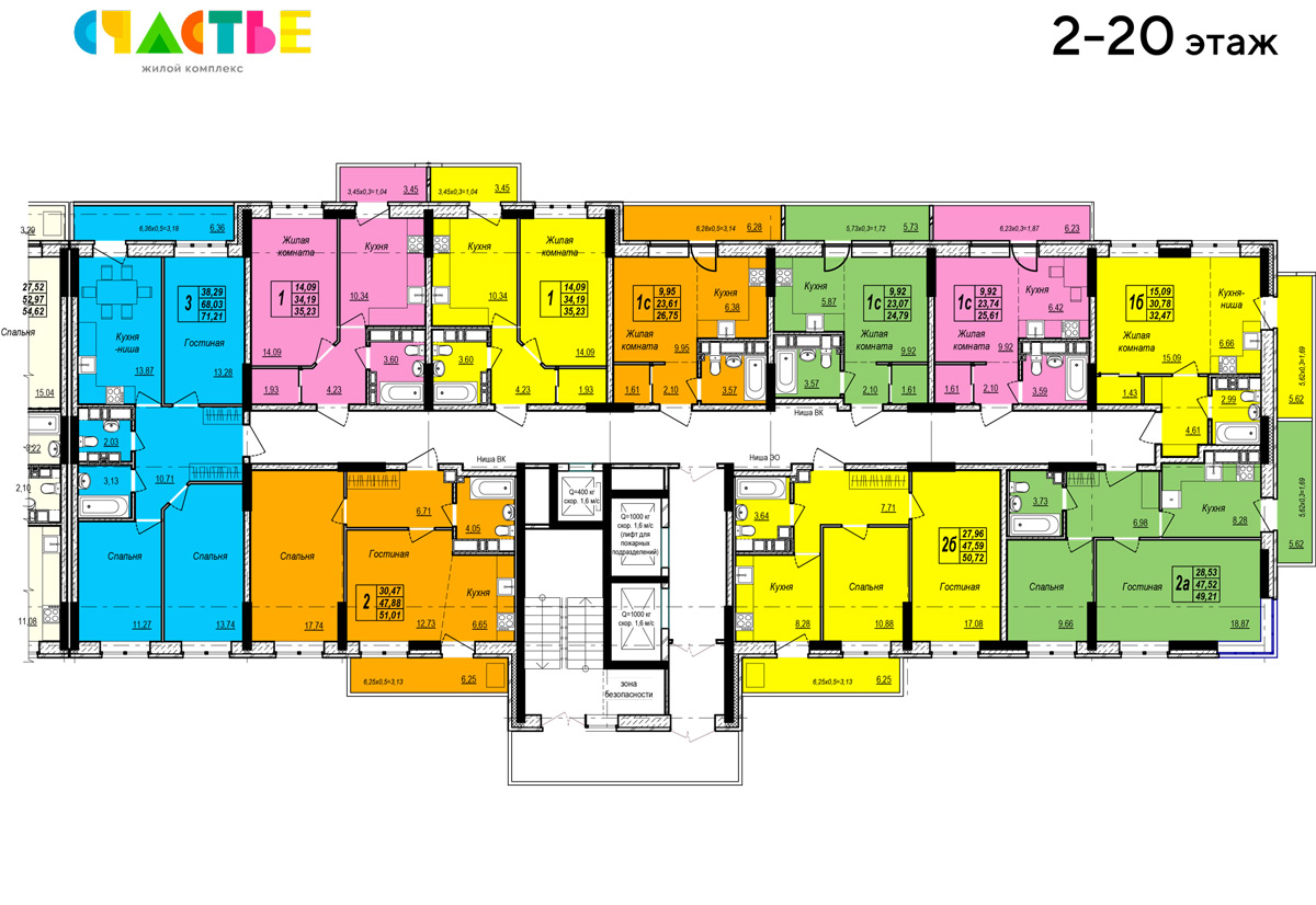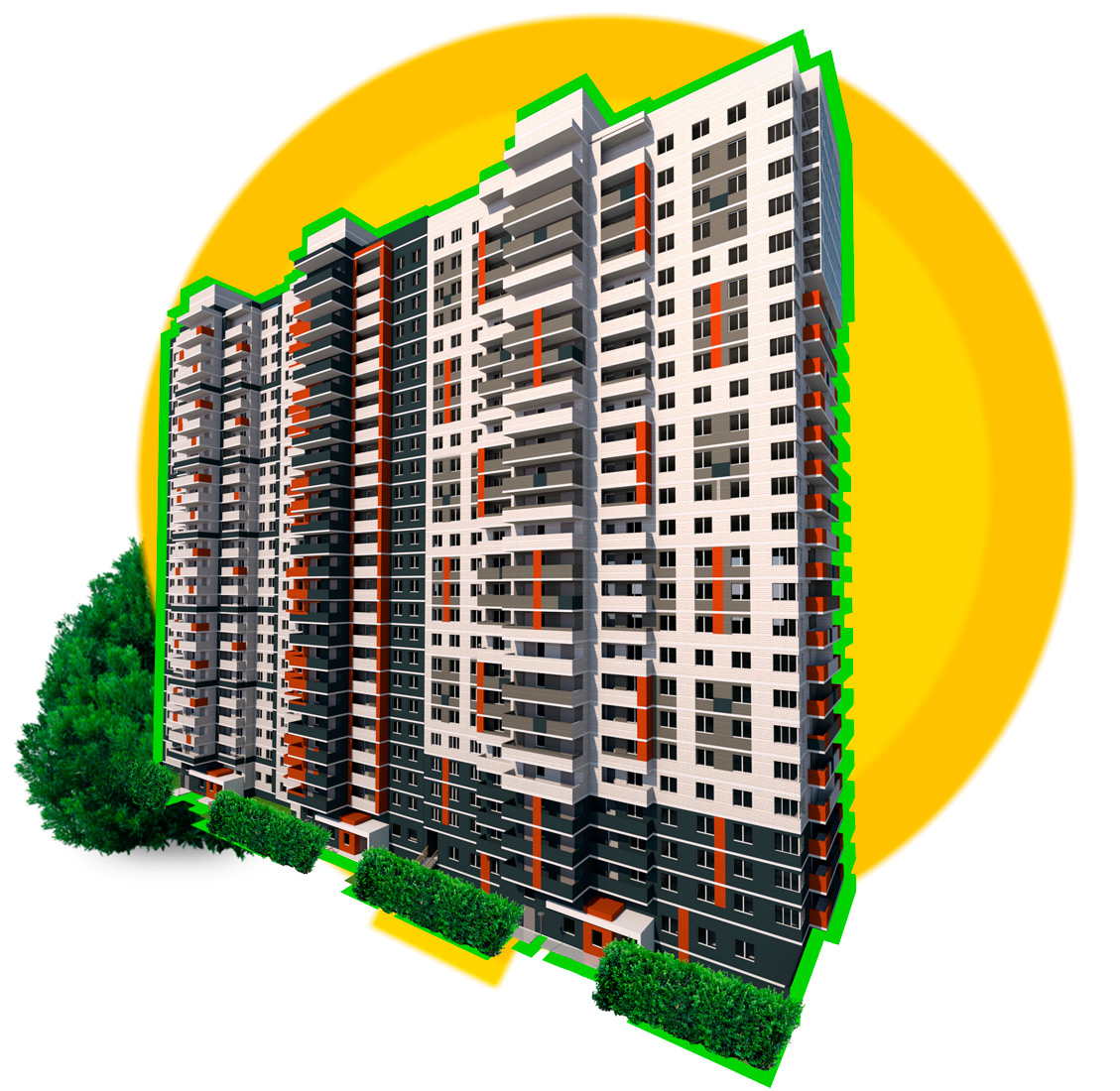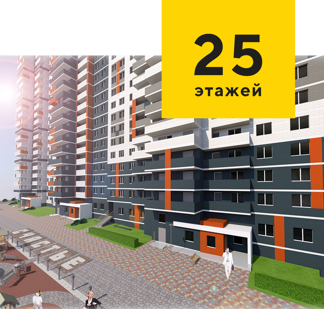 ЖК «Счастье» – доминанта района , которая лаконично вписывается и создает новую среду для счастливой жизни. Смелое использование цвета и яркие акценты визуально разделяют секции и создают действительно оригинальный облик дома.