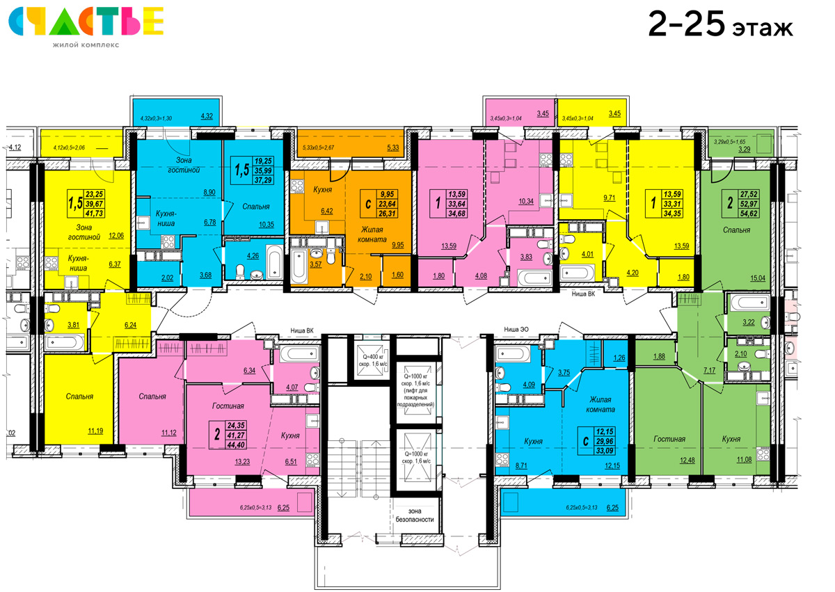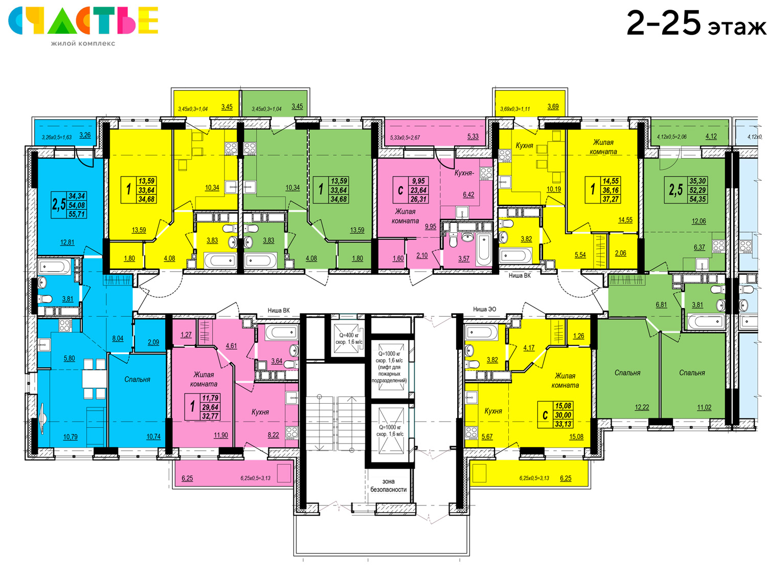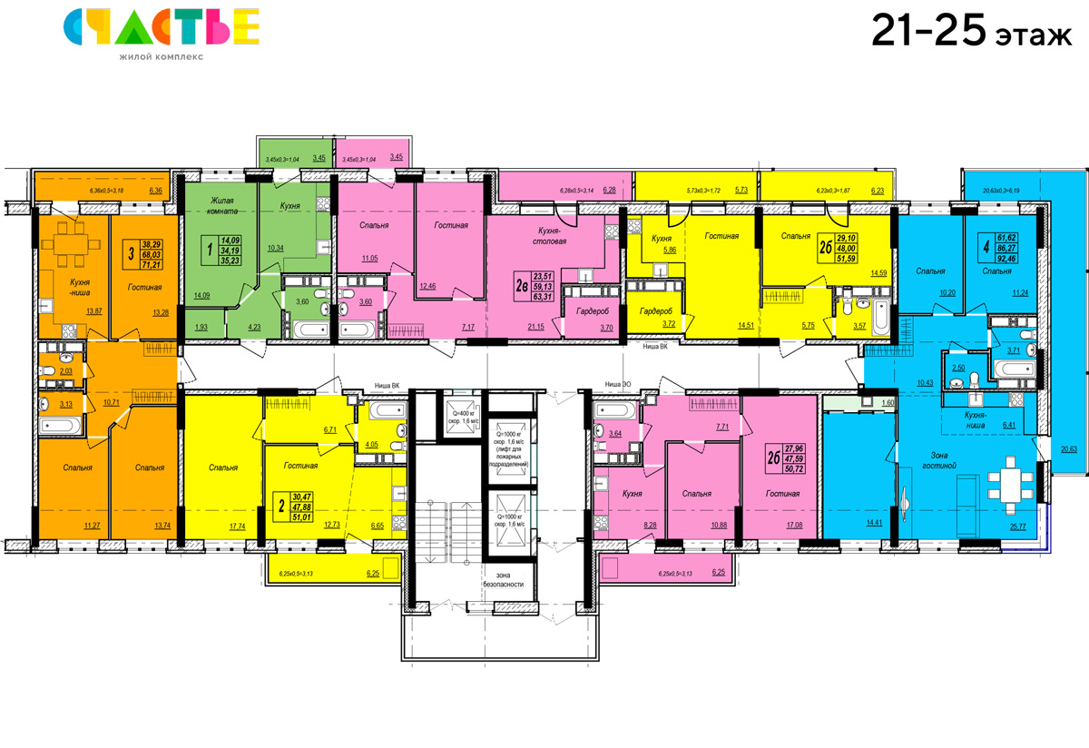 ЖК «Счастье» – доминанта района , которая лаконично вписывается и создает новую среду для счастливой жизни. Смелое использование цвета и яркие акценты визуально разделяют секции и создают действительно оригинальный облик дома.